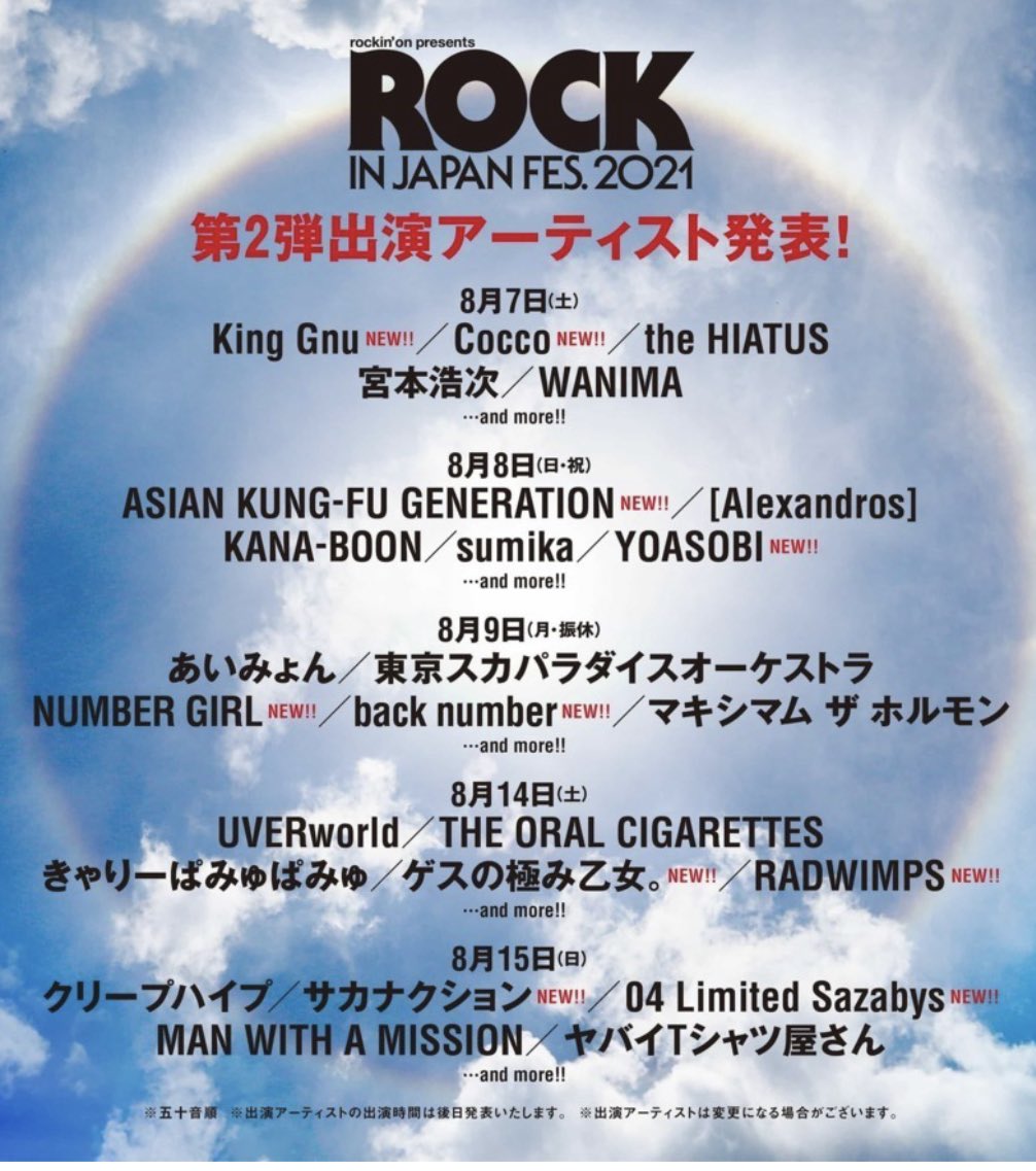 ロッキン出演なさそうだな