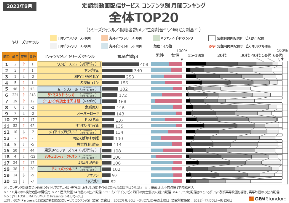 14位 138.7億円 ONE PIECE FILM RED