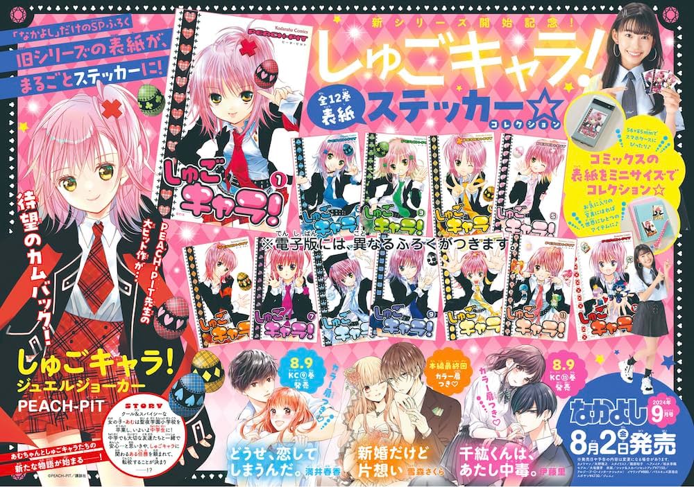 今月2日に発売された「なかよし」9月号。2000年代に人気を博した漫画「しゅごキャラ!」新シリーズの連載開始や、豪華付録の影響で、全国の書店で品薄状態が続いている。