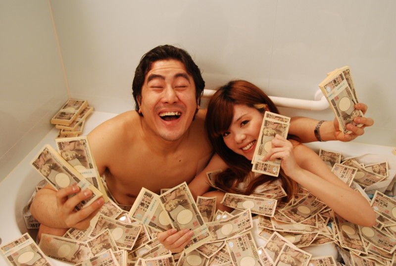 それで札束のお風呂に