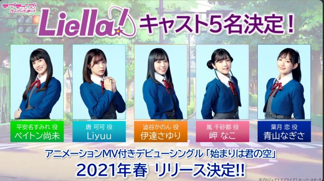 「Liella!」のアニメーションミュージックビデオ付きデビューシングル「始まりは君の空」が2021年春に発売されることも発表された。