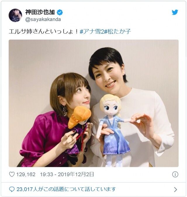 アナの吹き替えを担当した神田沙也加(28)のギャラは400万円で、“女王”エルサ役の松は500万円といわれています。