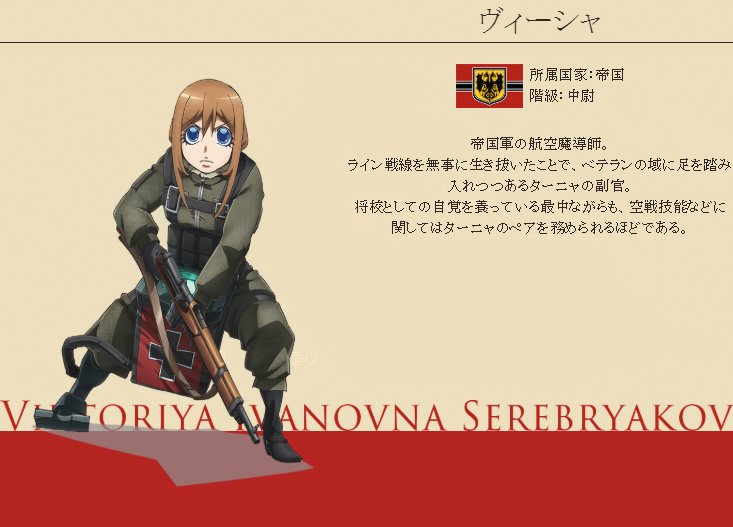ターニャ・デグレチャフ:悠木碧▽ヴィーシャ:早見沙織▽レルゲン:三木眞一郎▽ルーデルドルフ:玄田哲章▽ゼートゥーア:大塚芳忠