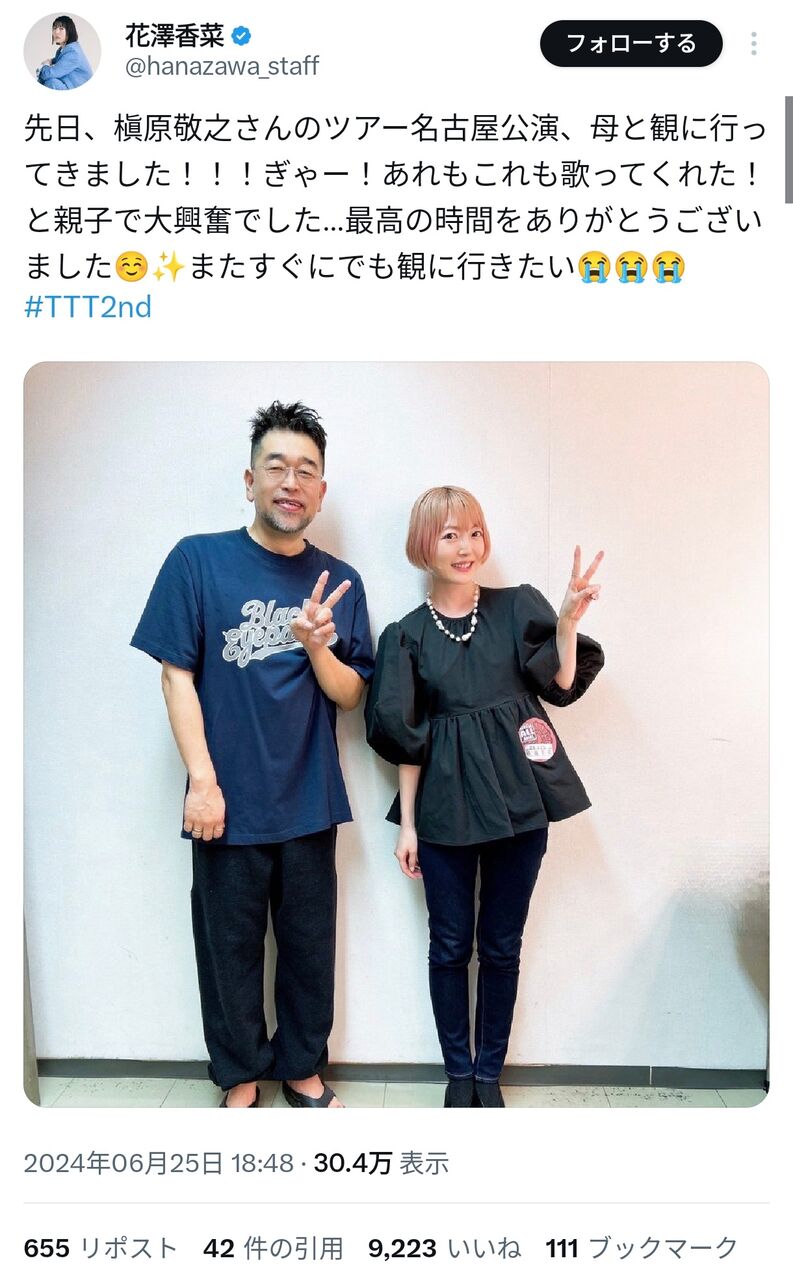 声優の花澤香奈が自身のXを更新。あの大人気歌手との豪華2ショット写真をアップした。